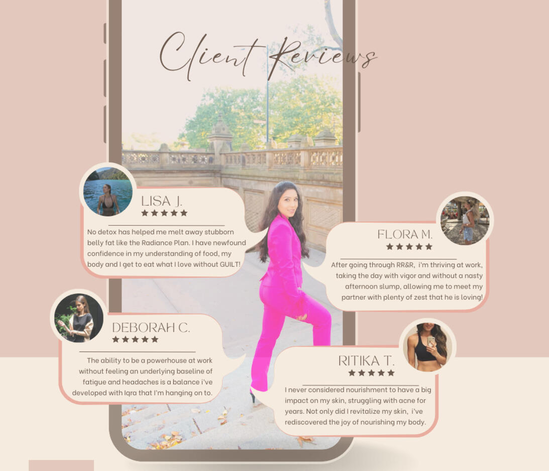 I’m Iqra, a women’s health expert and organizational psychologist who treats your nervous system and hormones as the true engine of your work, not a side project.My training weaves together Columbia University, health‑coach education with Harvard Medical School and The Institute for Integrative Nutrition, Yoga Teacher RYT‑200, Advanced Somatic Healing, and years of partnering with women and organizations like The United Nations, Dow Jones, and Avon. All of it has been in service of one problem: brilliant, high‑performing women whose bodies are quietly burning out under the weight of the lives they’ve built.I spent years watching exceptional women be applauded for their resilience while their cycles, sleep, digestion, mood, and sense of self quietly frayed and watching workplaces interpret that as a mindset issue instead of a physiological one.My work lives exactly at that intersection: women’s hormones, nervous‑system regulation, and the psychology of high achievers.I translate research and clinical training into elegant, realistic plans that match the demands of ambitious women’s lives, so you can protect your health, deepen your impact, and inhabit a body that feels as refined and powerful as the life you’ve created.